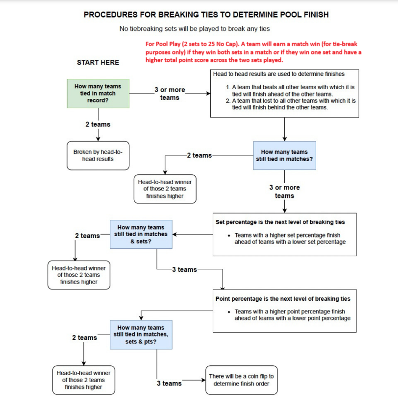 All pool play will consist of 2 sets to 25, win by two, no cap.